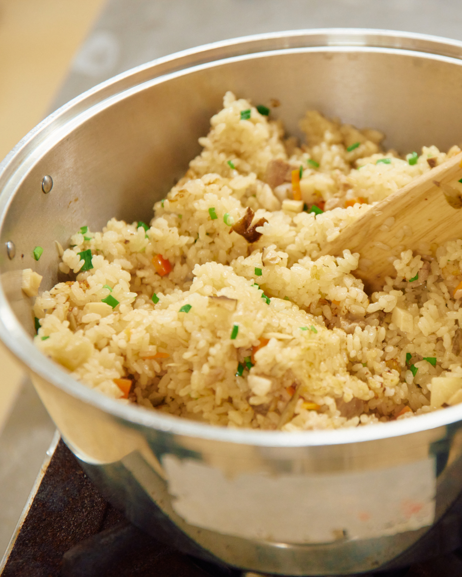 米に人参・ごぼう・椎茸・豚肉を加えて