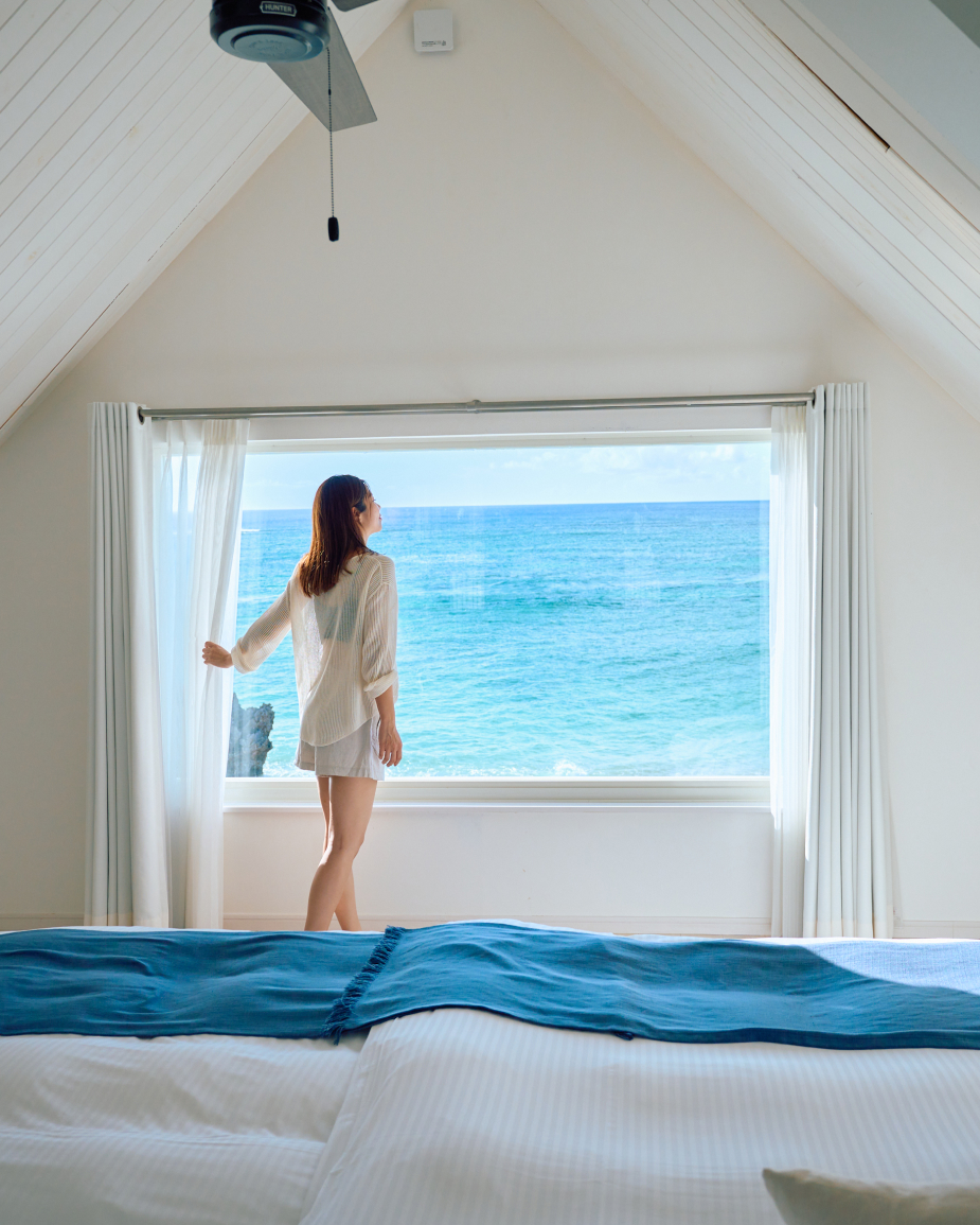 ヨロン島には、南国の楽園をそのまま閉じ込めたような多彩な宿泊施設がそろっています。ヨロンブルーの海を一望できる宿泊施設も多く、白砂のビーチに寄せる波音をBGMに、ゆったりとした島時間を満喫できます。また、島人のあたたかなもてなしに触れながら、暮らすように過ごす旅が叶います。棟貸しのヴィラやコテージも増えており、家族や仲間とプライベートな滞在を楽しみたい人にぴったり。
