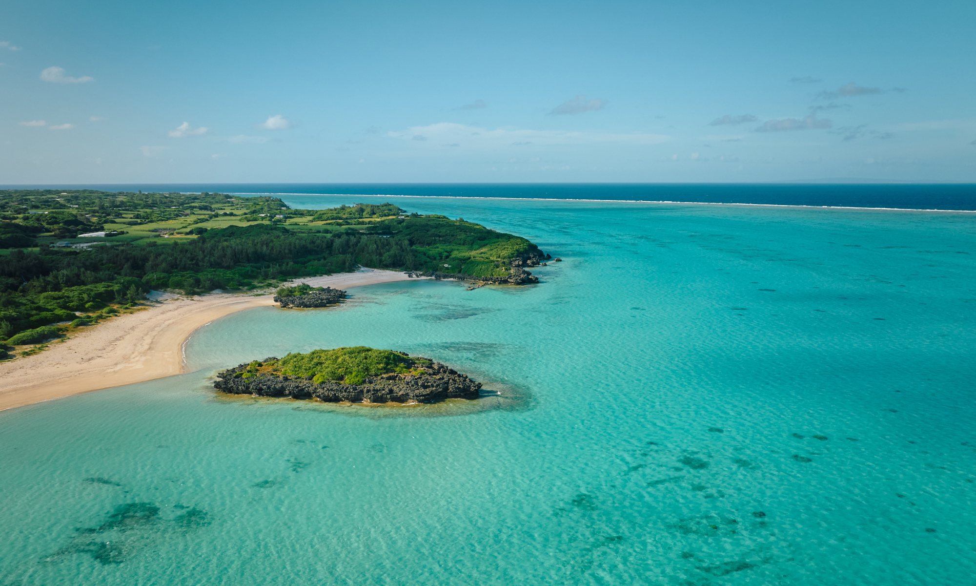 隆起サンゴが生み出した白い砂浜と透明度の高い遠浅の海は、青い空と共鳴して眩いばかりの煌めきを放ち、ヨロンブルーの海を作り出します。