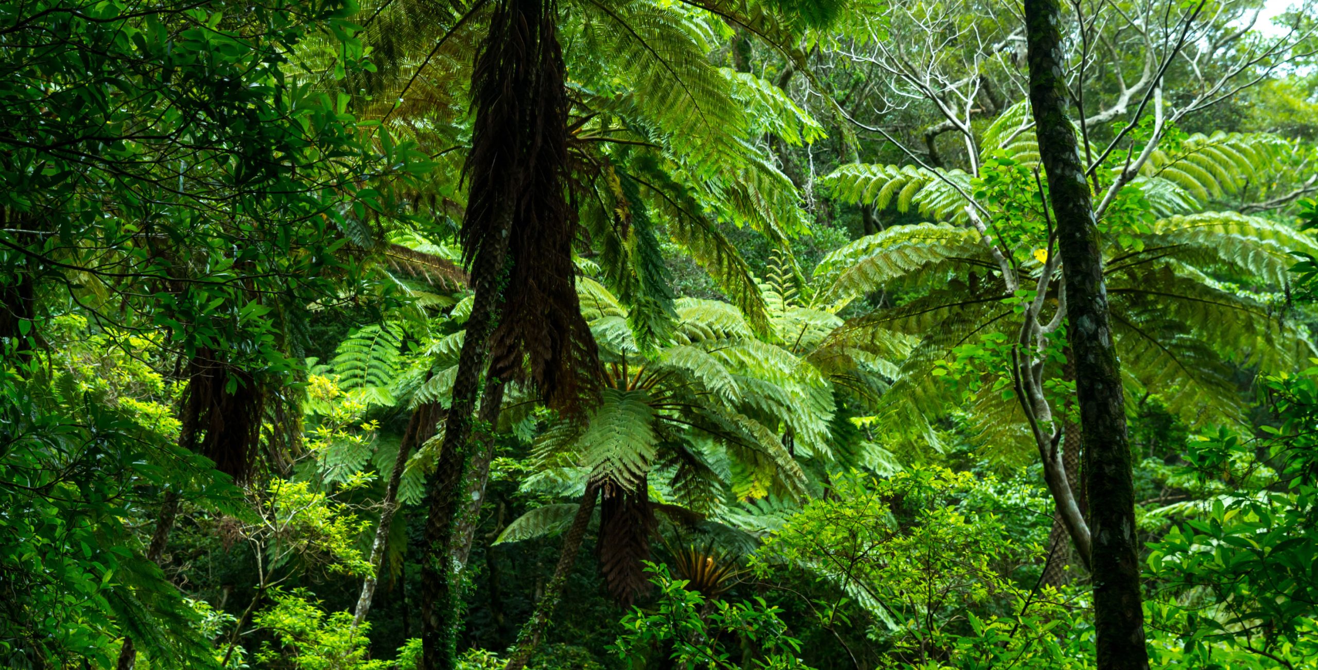 神秘的に生い茂る緑の森と山々、